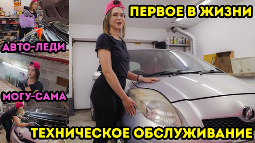 Девушка в гараже меняет масло. Купила машину месяц назад.
