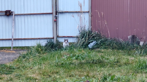 Новый кот посетил наш огород. Приехал на дачу, и белый трусливый кот уже осваивается на участке. Ждем кошку Машку и кота Гошу в гости