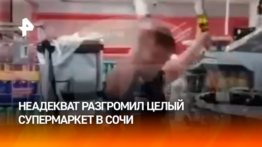 Полный разгром: неадекват разнес супермаркет в Сочи – скидывал бутылки, выкинул кассу