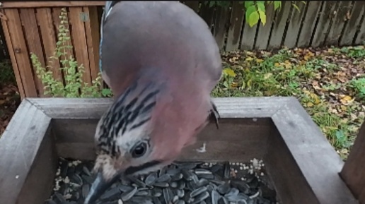 На кормушке. Прикрепил камеру к кормушке. Птички кушают с удовольствием.