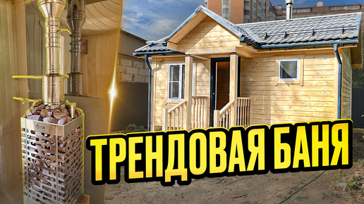 ТРЕНДОВАЯ БАНЯ 6х4м с крыльцом, с печью АСТОН. Съемка проходящего строительства.