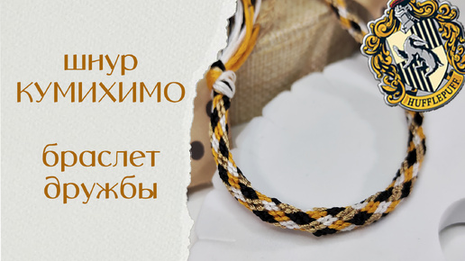 Браслет для фанатов Пуффендуй - Кумихимо - Фенечка - Шнур - Браслет дружбы - Мулине - Хогвартс - Гарри Поттер
