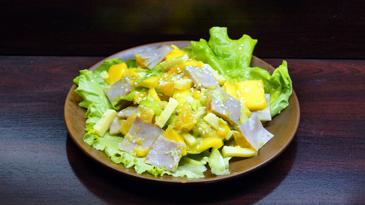 Делаем салат из манго с варёно-копчёной свининой и сыром
