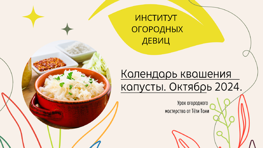 Календарь КВАШЕНИЯ КАПУСТЫ. Октябрь 2024.