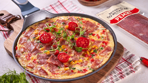Вкусный омлет с ветчиной по-испански ремит и свежими овощами