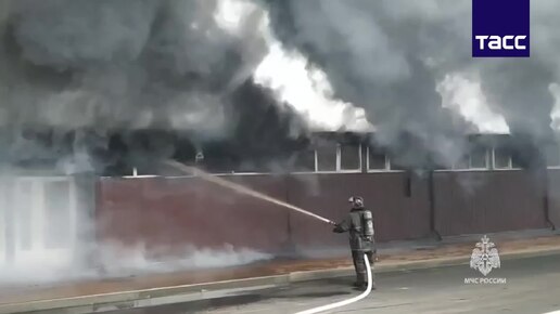 Кадры тушения Центрального рынка в подмосковном Ногинске
