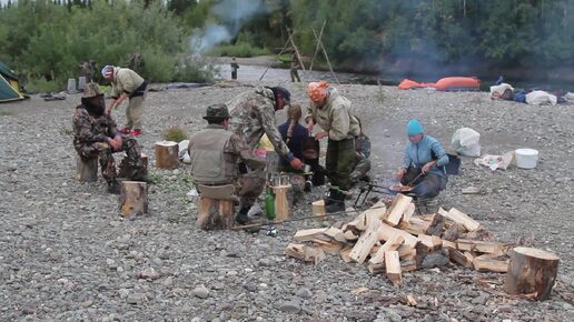 Место стоянки на галечнике у 8-метровой, рыбной, ямы. Река Грубею.