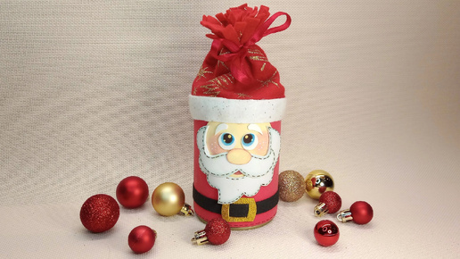 Чудесный Дед Мороз из консервной банки. Идея, как красиво оформить подарок на Новый год.