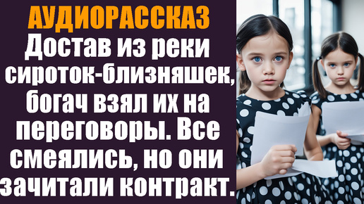 Достав из реки сироток близняшек, богач взял их с собой на важные переговоры. Все смеялись.