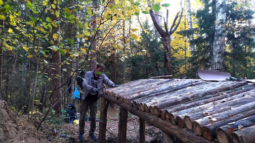 Землянка скрытая в листве. Продолжаю делать крышу.