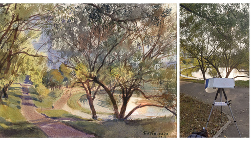 20241003 Рядом с Ясеневскими прудами. Москва. Натурный этюд, акварель