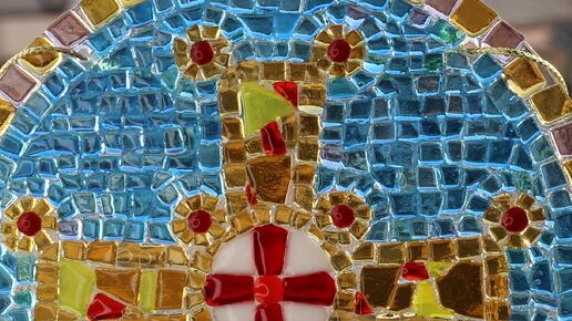 Витраж Голуби мозаичный из стекла ручной работы. Мастерские Свято-Елисаветинского монастыря