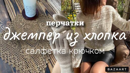 Хлопковый джемпер/филейная салфетка крючком/перчатки из остатков мериноса/покупки