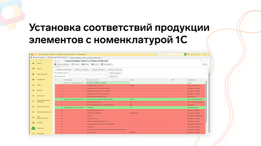 Установка соответствий продукции - элементов с номенклатурой 1С