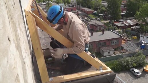 Монтаж железного козырька на панельном доме