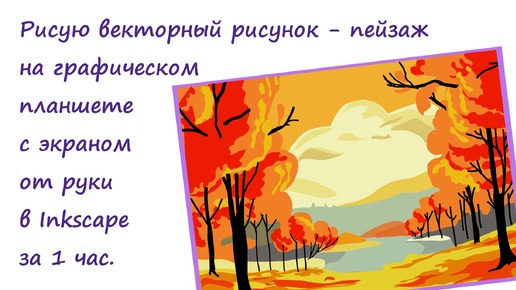 Рисую векторный рисунок - пейзаж на графическом планшете с экраном от руки в Inkscape за 1 час.