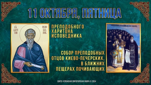 Собор прп. отцов Киево-Печерских, в Ближних пещерах. Прп. Харитона Исповедника. 11.10.2024 г. Календарь