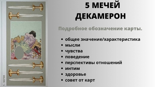 5 Мечей ДЕКАМЕРОН Значение | ТАРО ОБУЧЕНИЕ