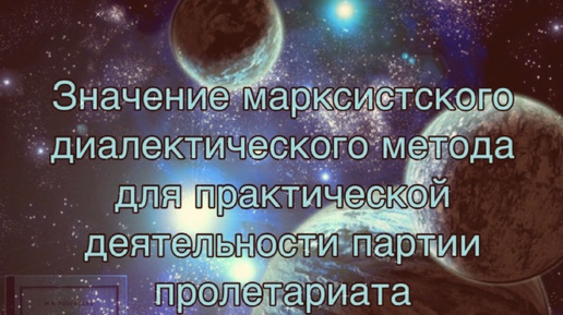 ЗНАЧЕНИЕ МАРКСИСТСКОГО ДИАЛЕКТИЧЕСКОГО МЕТОДА ДЛЯ ПРАКТИЧЕСКОЙ ДЕЯТЕЛЬНОСТИ ПАРТИИ ПРОЛЕТАРИАТА