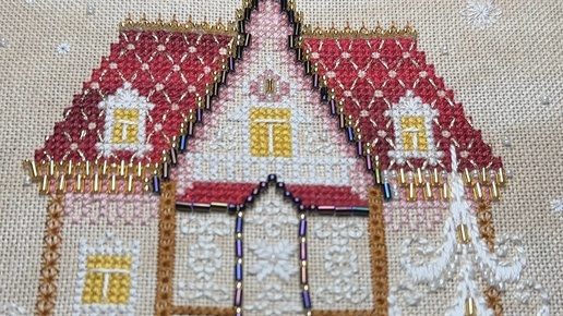 Вышивка крестиком. Кружевной домик, полный отшив