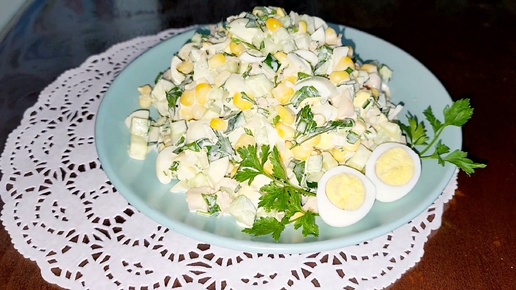 САЛАТ ИЗ КОНСЕРВИРОВАННЫХ КАЛЬМАРОВ.🦑🌽🥒