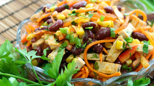 Салат “Мужской каприз” с мясом, фасолью и морковкой по-корейски