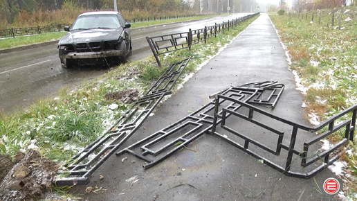 Гололед и скорость. В Ревде БМВ разнес дорожное ограждение