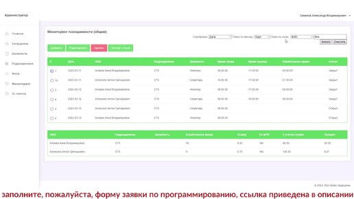 WEB-приложение для проходной. Программа на + PHP 5.x. База данных: MySQL. Курсовая работа