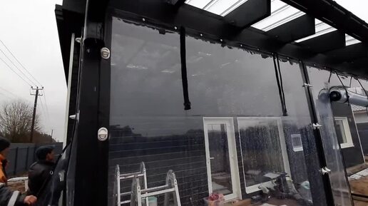 Мягкие окна ПВХ, черный кант, прозрачность 99%. Остекление террасы. Монтаж и установка