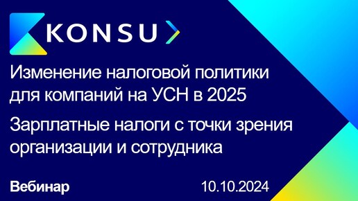 Вебинар - Изменение налоговой политики для компаний на УСН 2024-2025. Зарплатные налоги | Konsu