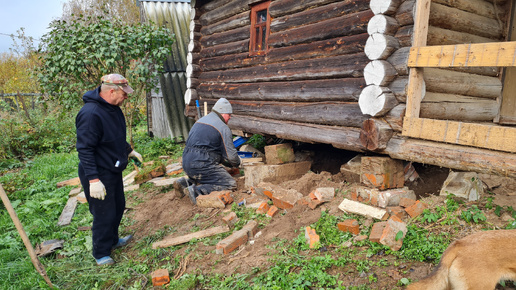 Начало спасательной операции по восстановлению бани, решившей рухнуть с откоса