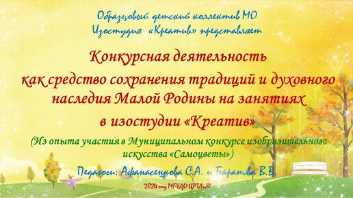 Конкурсная деятельность, как средство сохранения традиций и духовного наследия Малой Родины в творческой студии «Креатив»