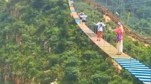 Китай. Верёвочный и стеклянный подвесной мосты.