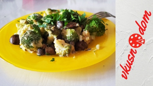 БРОККОЛИ с ГРИБАМИ под СЫРОМ. Вкусный ужин. Рецепт.
