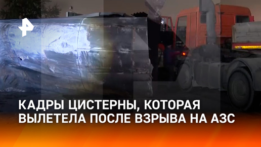 Цистерну, которая вылетела в жилые дома после взрыва на АЗС в Грозном, показал корреспондент РЕН ТВ Мурад Магомедов
