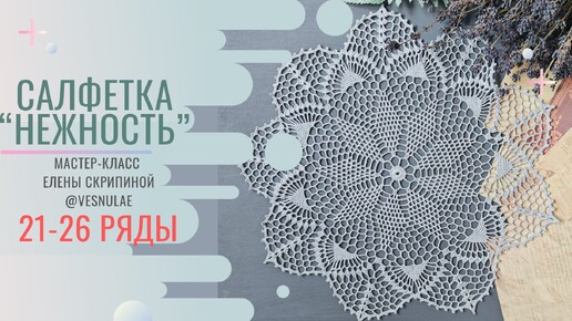Салфетка Нежность, 21-26 ряды. Видео вязания.