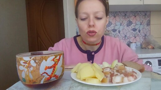 ДОМАШНЕЕ САЛО С КАРТОШЕЧКОЙ/ОТКУДА ПЕРЬЯ РАСТУТ/МУКБАНГ