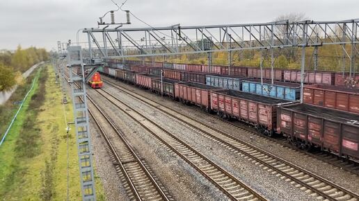 Тепловоз ТЭМ18ДМ-1957 с 2 полувагонами