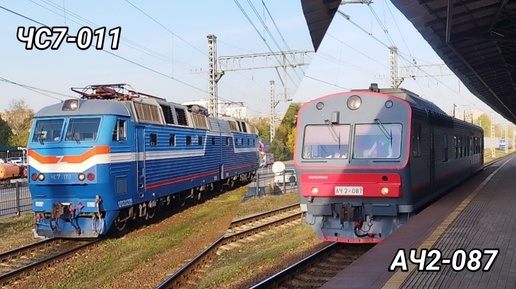 Вечер редкостей на платформе Новогиреево. Автомотриса АЧ2-087 и единственный синий ЧС7 в работе.