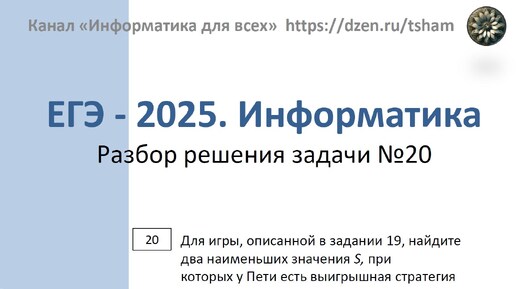 ЕГЭ - 2025. Информатика. Задача 20. Для игры, описанной в задании 19, у Пети есть выигрышная стратегия