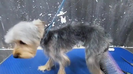 Видео ускорено в 4 раза!!! Стрижка щенка йорка