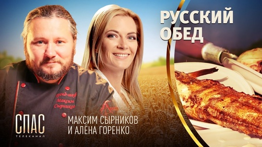 РУССКИЙ ОБЕД. ЗАПЕКАНКА ИЗ ТВОРОГА И ЧЕРНИКИ. УГОРЬ КОПЧЕНЫЙ. СУДАК ВЕРЧЕНЫЙ НА РОЖНЕ