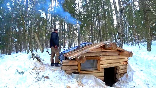 ПЕРВЫЙ РАЗ ТОПЛЮ ПЕЧЬ В ДОМЕ ПОД ЗЕМЛЕЙ _ ВСТРЕЧА С ЛОСЯМИ _ СТРОЙКА ЗЕМЛЯНКИ В ЗИМНЕМ ЛЕСУ
