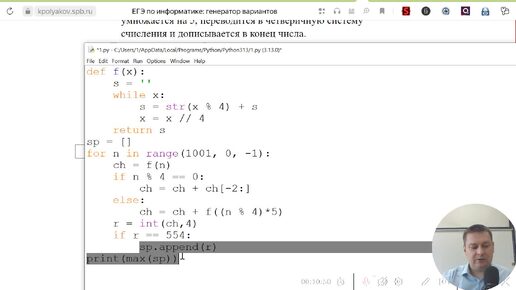 Решаем задачу № 7385 автора А. Минака типа №5 ЕГЭ по информатике (сайт Полякова). Четверичная система счисления, срезаем 2 цифры, ищем max N