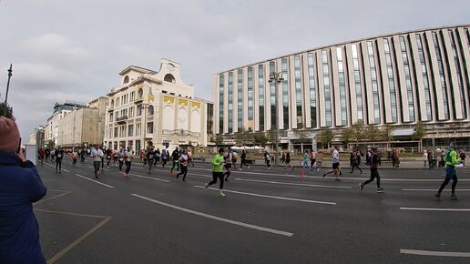 Видео с 25-го километра Московского марафона 2024 года. Интервал: от 5 минуты до прохода пейсеров на 4 ч 14 мин до 3 минуты после