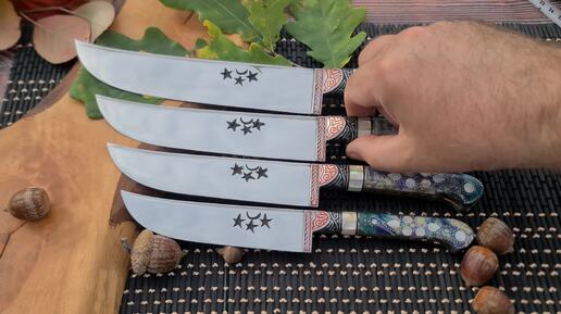 Набор из 4-х пчаков с нержавеющими клинками сделанными Бахромом Юсуповым. Сборка Хайрулло Юсупов.