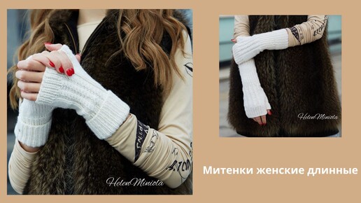 Длинные женские митенки белого цвета вязаные из шерсти мериноса