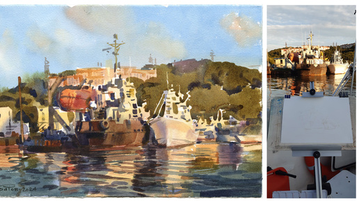 20240903 Богородское озеро, Петропавловск-Камчаткий. Натурный этюд, акварель