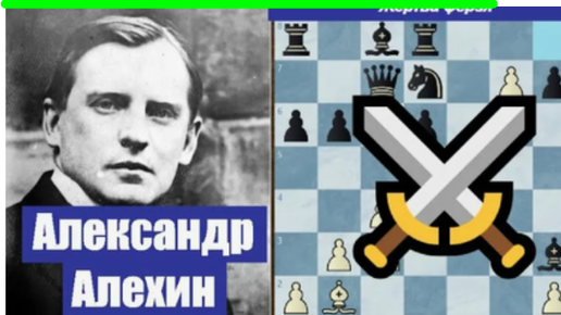 Александр Алехин против Георга Марко в зящной шахматной постановке в редкой сейчас защите Филидора. Маэстро выигрывает белыми, 1912, 1-0