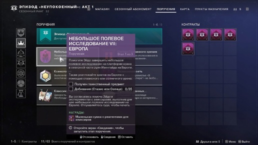 Destiny 2 Финальная форма Сезон Ревенант Акт 1Небольшое полевое исследование 7: Европа
